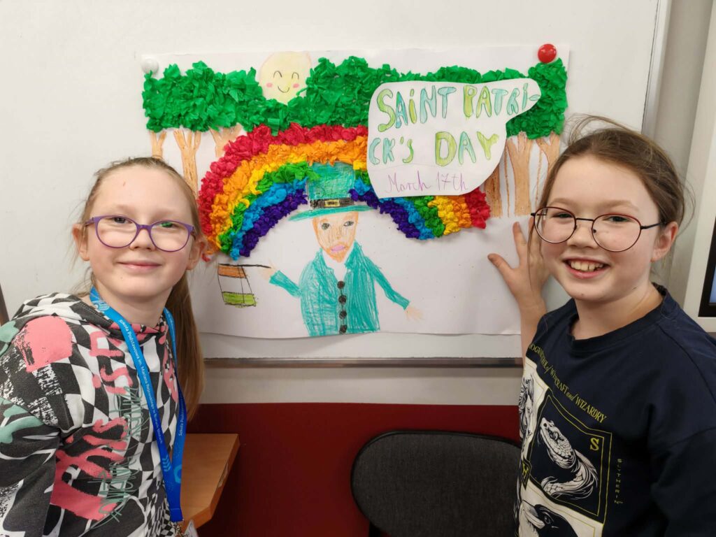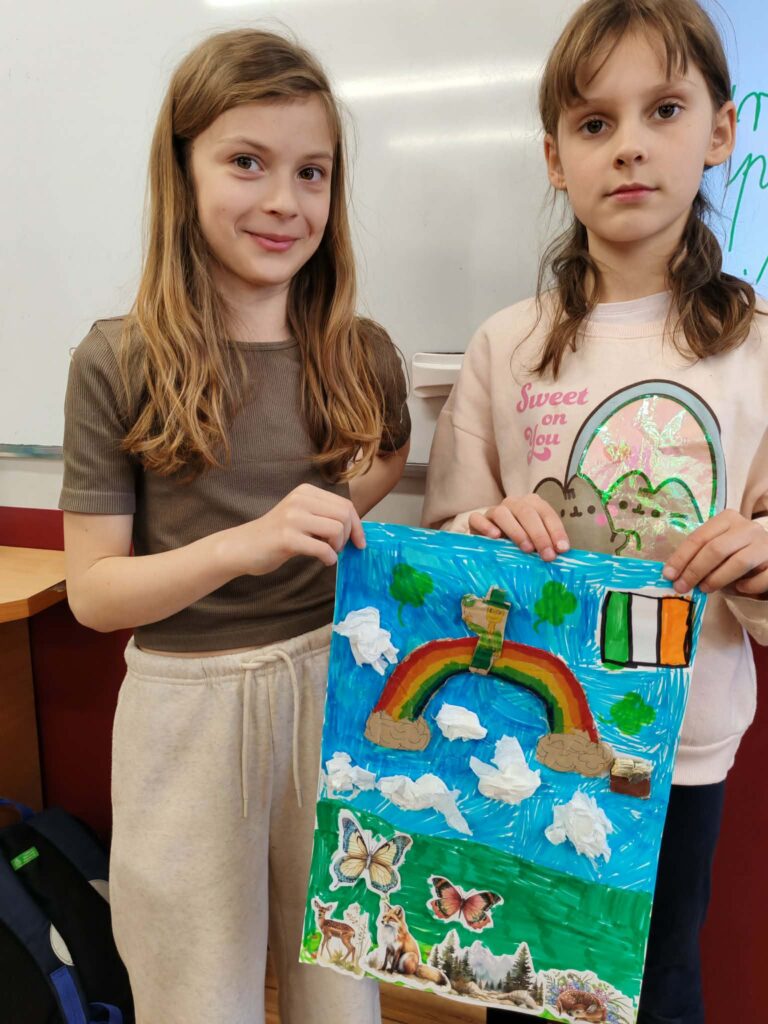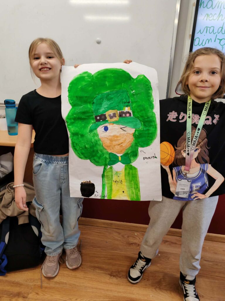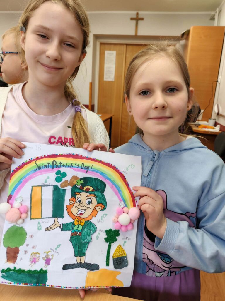 Z okazji Dnia Świętego Patryka (Saint Patrick’s Day) uczniowie klas: 3A, 3B, 3G i 3H poznawali kulturę Irlandii podczas zajęć językowo-plastycznych.