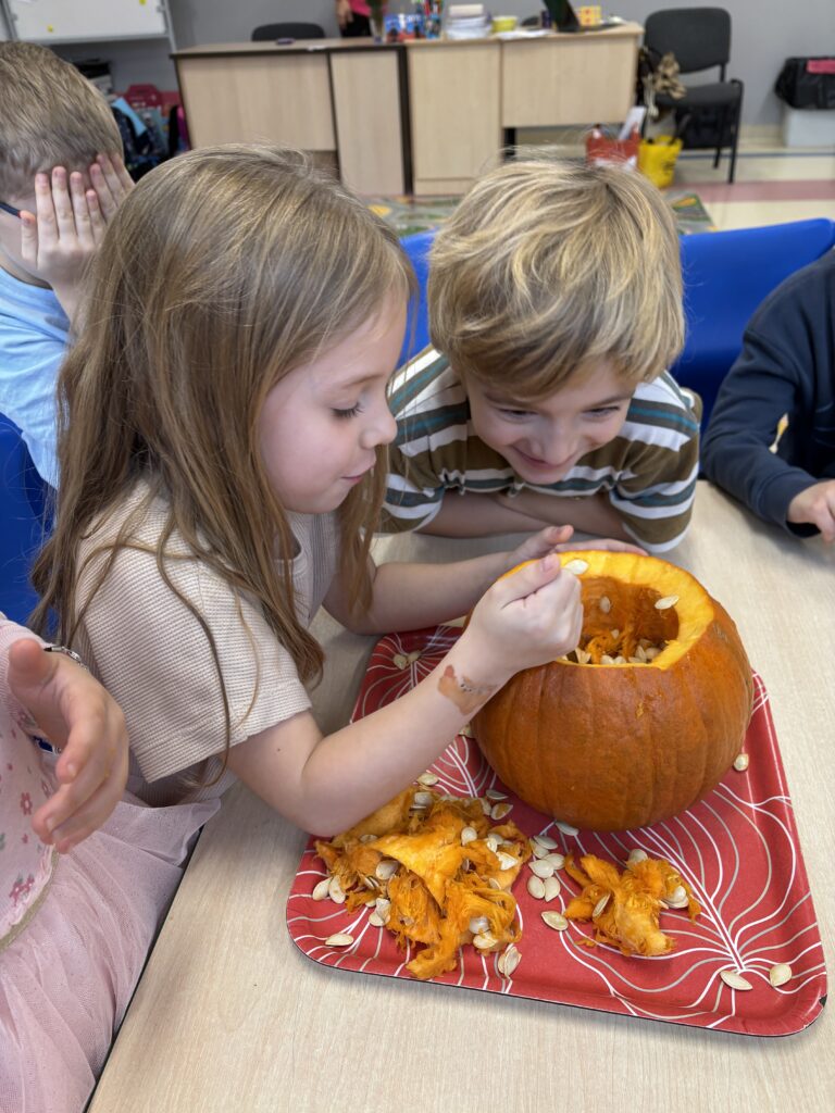 W minionym tygodniu w Opiece przedszkolnej odbyły się obchody Dnia Dyni. Podczas zajęć dzieci miały okazję poznać różnorodne gatunki dyni, dowiedzieć się, jak wygląda proces jej wzrostu oraz jakie zastosowanie znajduje w kuchni i codziennym życiu. Dzieci uczestniczyły w zajęciach plastycznych, tworząc prace inspirowane dynią, a także w zabawach ruchowych. W programie znalazły się również aktywności sensoryczne, umożliwiające dzieciom doświadczenie struktury, zapachu i koloru dyni za pomocą różnych zmysłów. Na zakończenie dzieci otrzymały pamiątkowych odznaki.