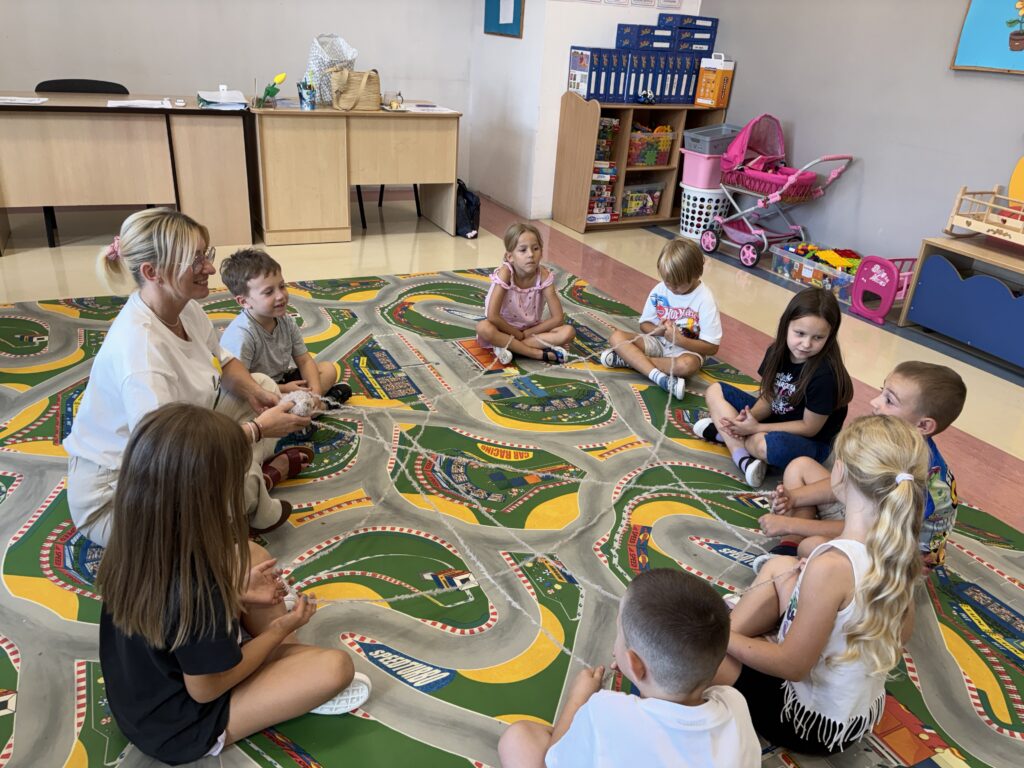 Pierwszy miesiąc w Opiece Przedszkolnej minął bardzo intensywnie. Dzieci miały okazję poznać nowe otoczenie, kolegów i koleżanki. Początkowe dni pełne były emocji – zarówno radości, jak i tęsknoty za rodzicami – jednak z każdym dniem uczniowie coraz lepiej odnajdywali się w naszej rzeczywistości.